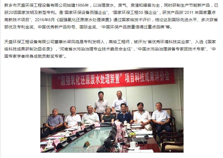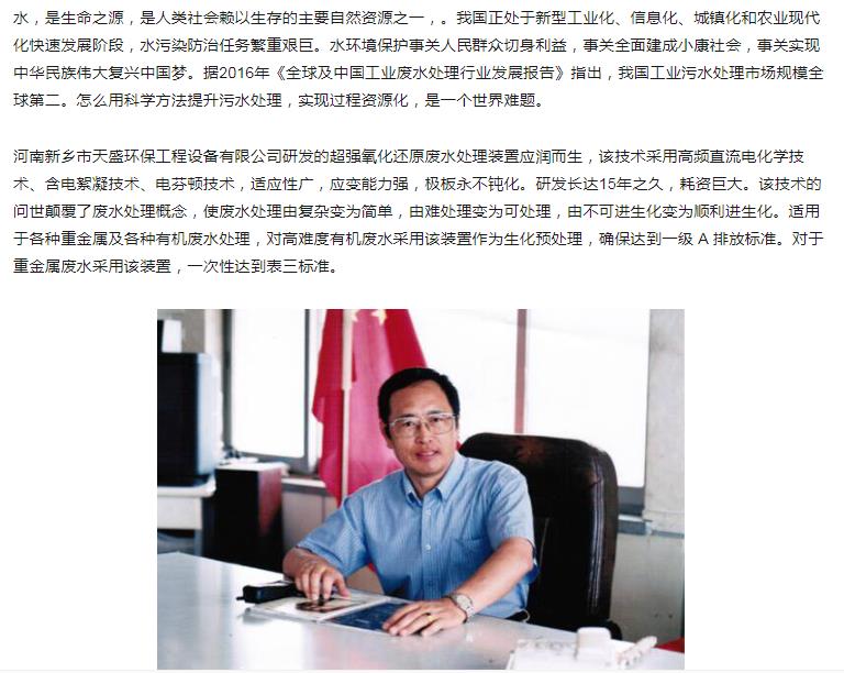 中國(guó)高新技術(shù)網(wǎng)發(fā)布:《關(guān)注:解碼科技創(chuàng)新》——新鄉(xiāng)市天盛環(huán)保“超強(qiáng)氧化還原廢水處理技術(shù)”