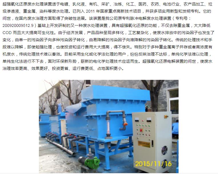 企業(yè)家在線(xiàn)發(fā)布:超強(qiáng)氧化還原廢水處理裝置 攻克廢水處理難題